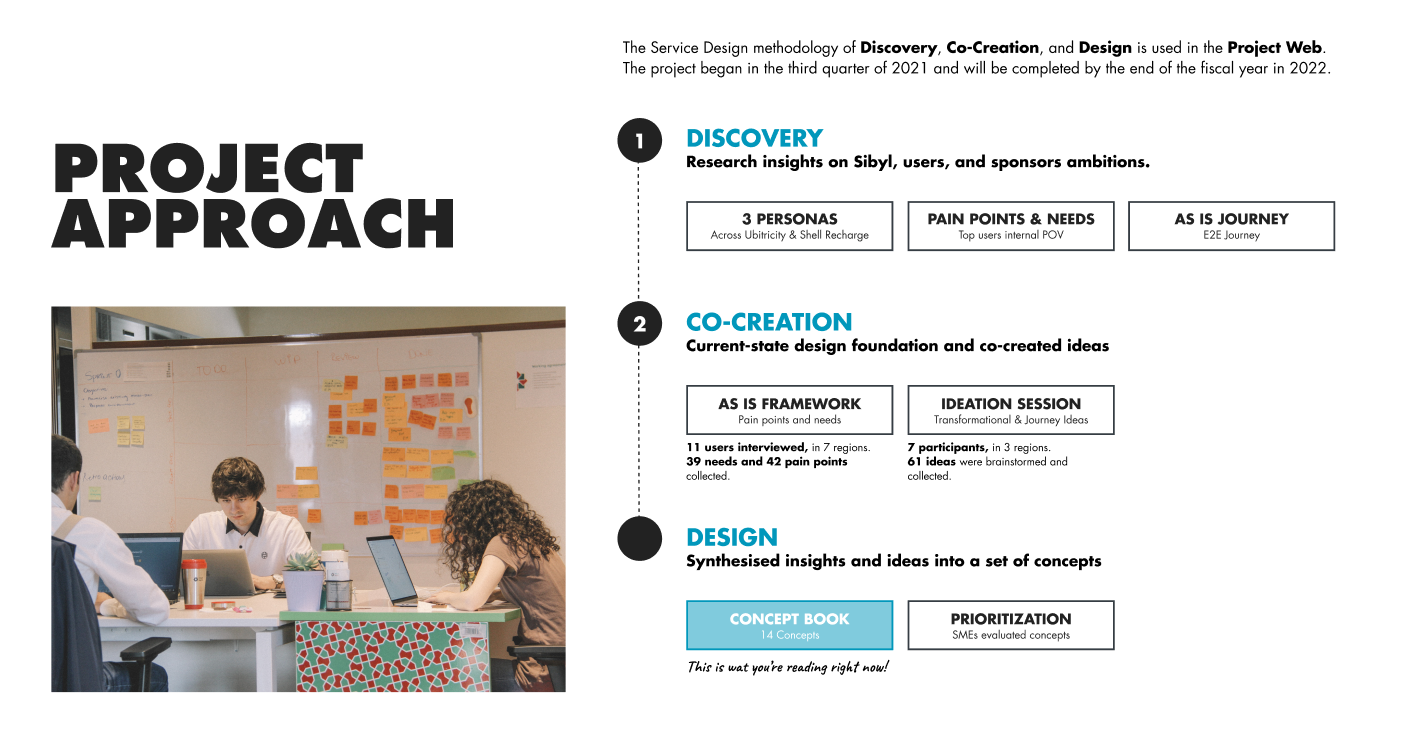 Upon joining Shell, I was introduced to a brilliant team and assigned to the Sibyl project, an EV network planning tool and I started collaborating with the user researcher and the service designer. I studied the current platform to identify areas for improvement and in parallel I delved into the existing Concept Book documentation, produced during the Discovery Phase so I could gain a deep understanding of our audience. This foundation work allowed me to start thinking on how to translate research material into the first web app concept.